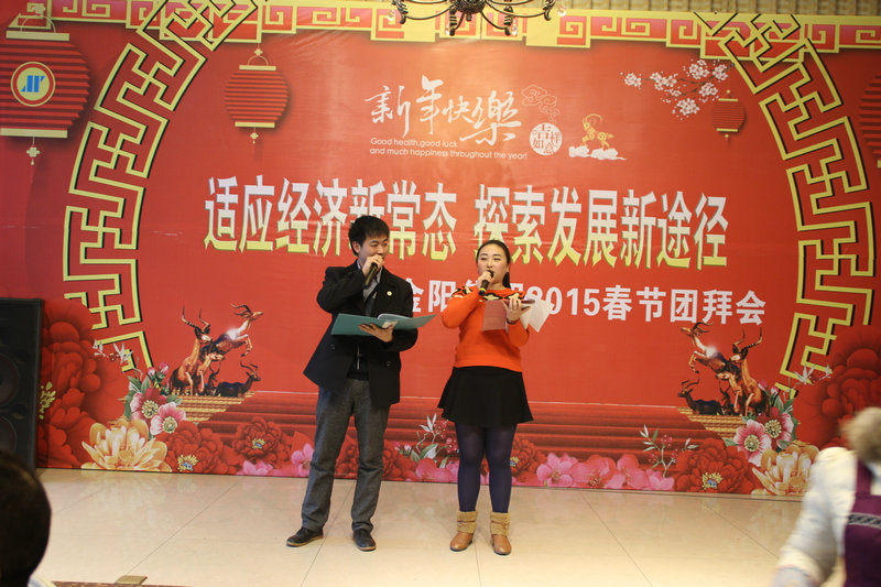 告别不平凡的2014,我们又迎来崭新的2015。2月14日,“适应经济新常态、探索发展新途径——金阳集团2015年新春团拜会”在金荷山庄如期举行,集团各部门、各子公司员工欢聚一堂,载歌载舞,共迎羊年的到来。