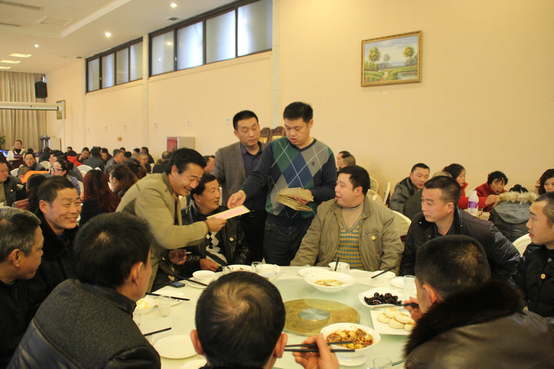 团拜会由公司员工彭颖、廖盼主持,首先对在2014年工作中表现特别突出的15位优秀员工进行了表彰,并颁发了奖金和《荣誉证书》;然后,集团各部门、各子公司自编自演了合唱、舞蹈等文艺节目,其间穿插三轮幸运抽奖;公司总经理邓炼先生照例在团拜会现场为全体员工派发了春节慰问红包。整个团拜会在一派欢乐、祥和的气氛中进行。(图为团拜会现场照片)。